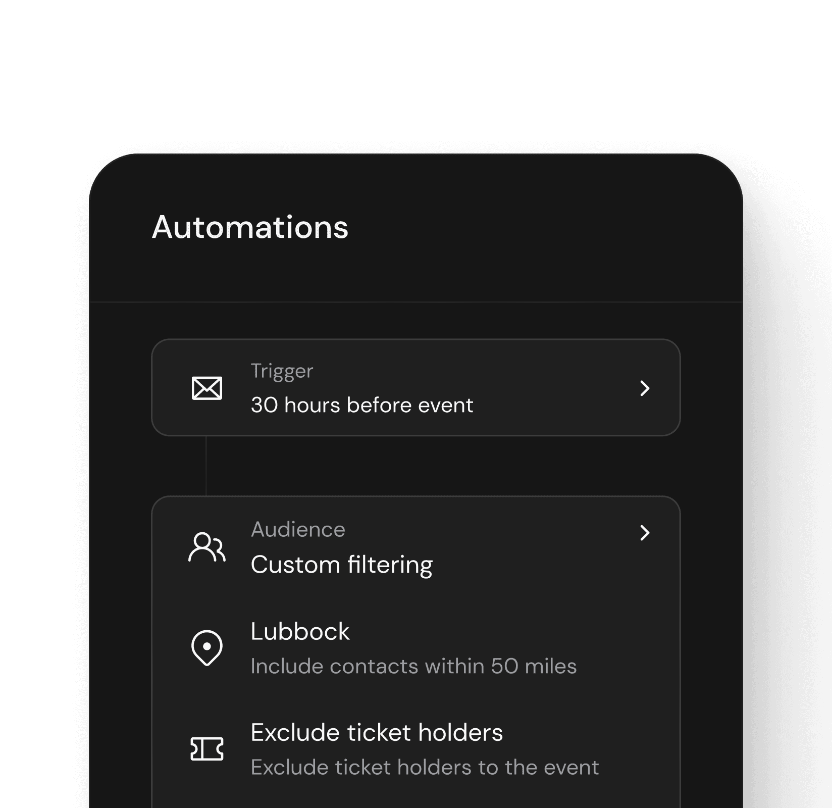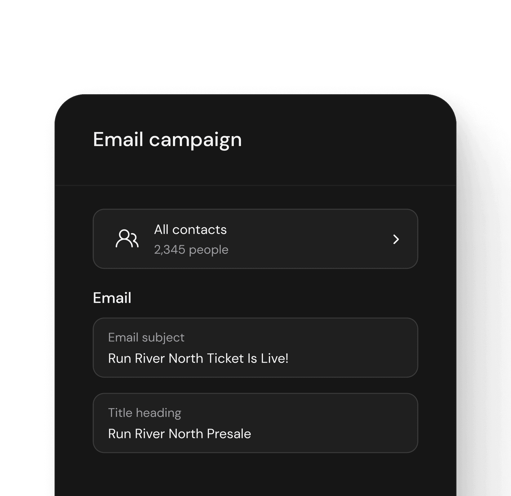 Cymbal's email marketing platform is built to save you hours on tedious work and let you focus on the content that drives ticket sales. With features like custom templates, automated campaigns, and sophisticated targeting — selling tickets has never been easier.