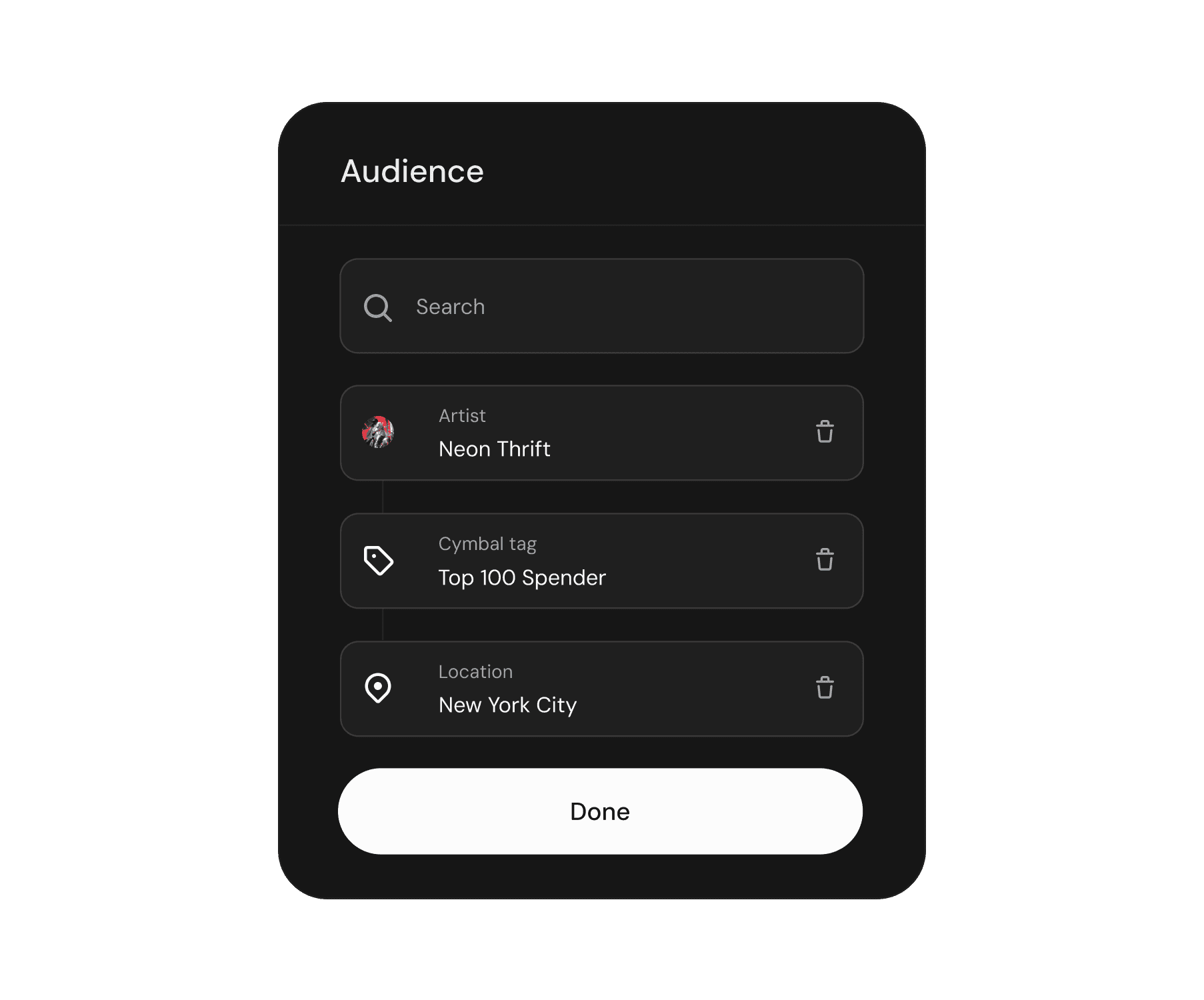 Test multiple audiences in one campaign and let Cymbal shift spend to the best performer—automatically. More reach, less guesswork.
