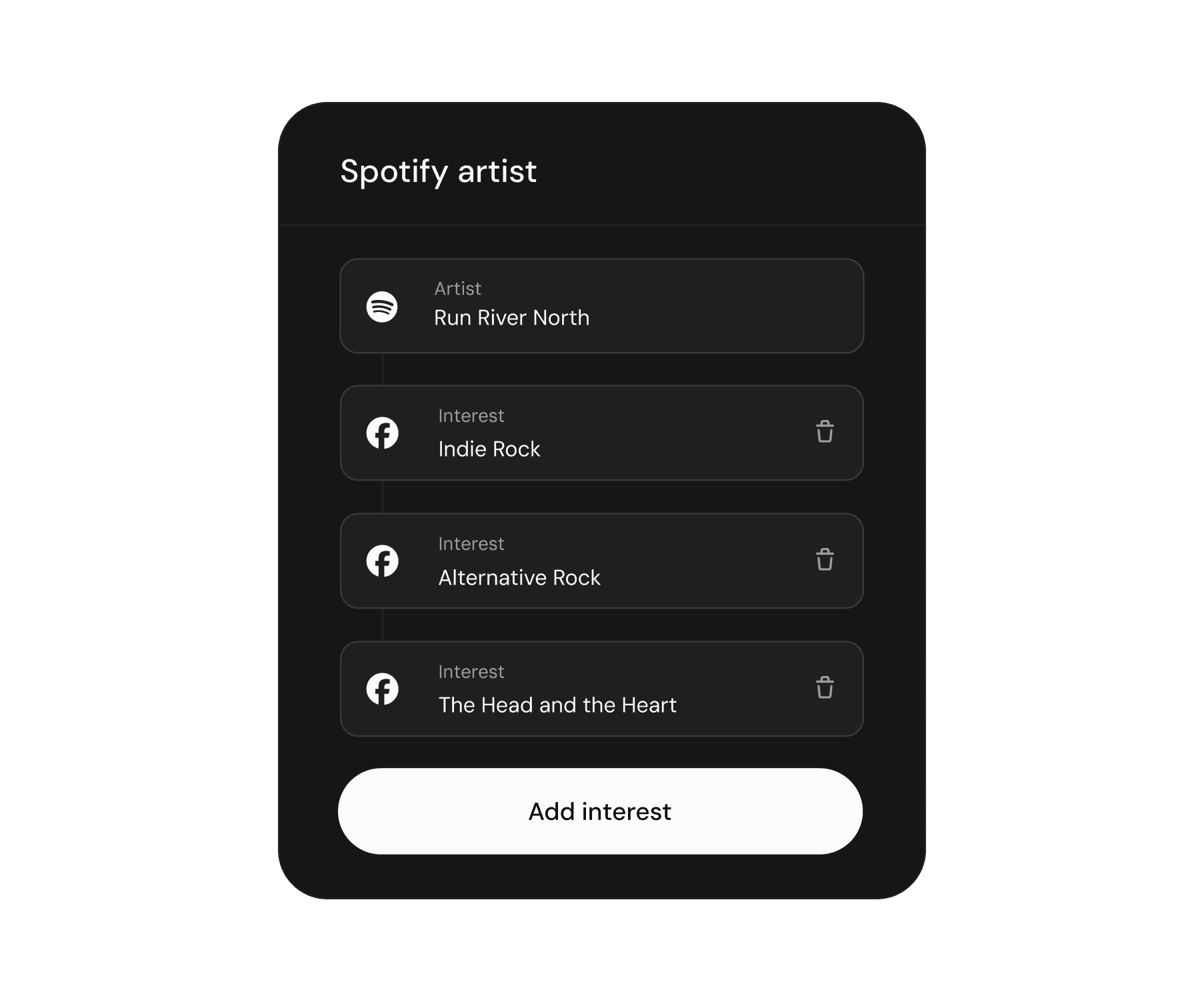 Build powerful audiences using past buyers, artist and playlist data, genres, or lookalikes. Go beyond Meta’s vague interest targeting and reach real fans.