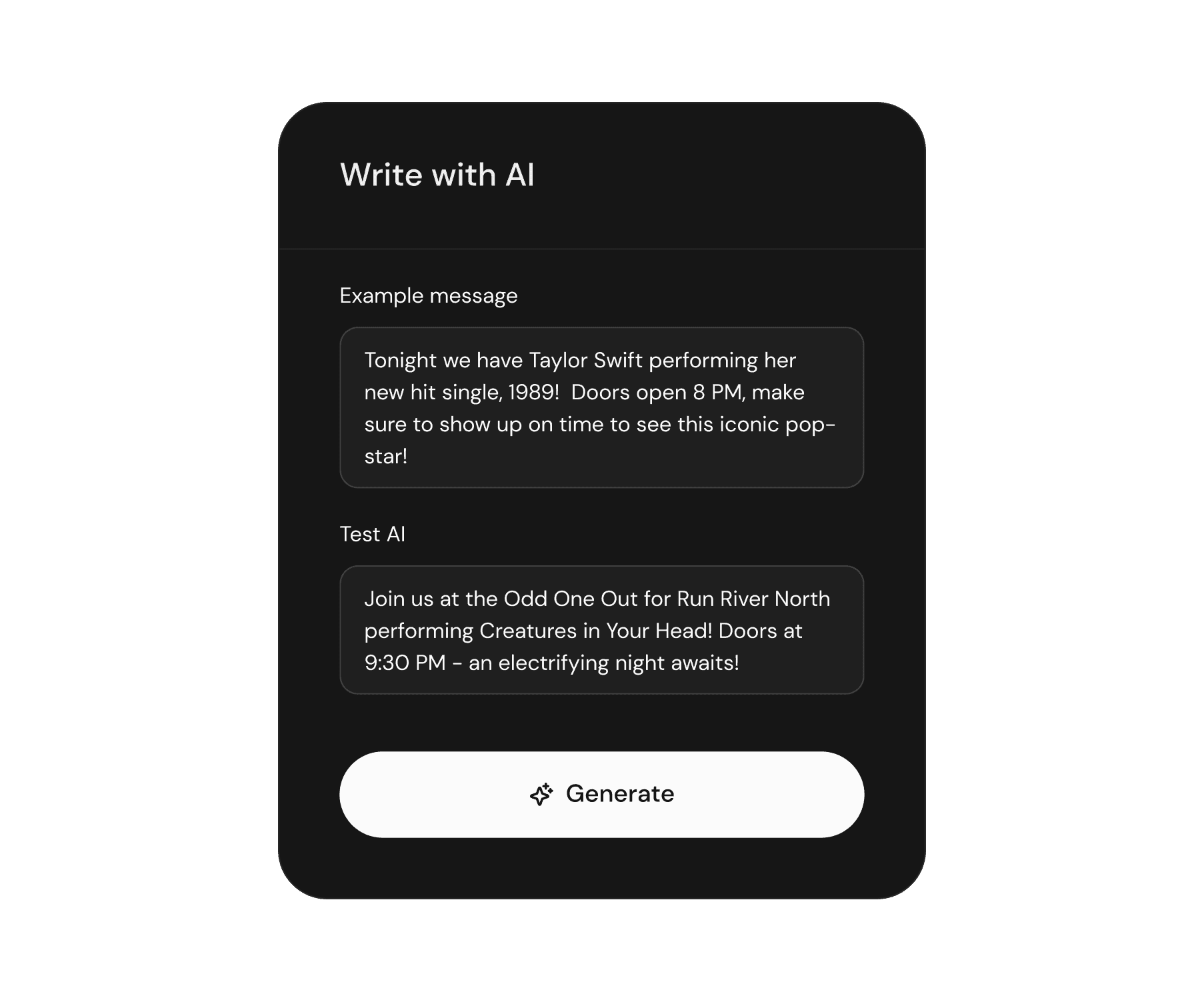 Whether you’re a small promoter, a growing venue, or a large operation, our pricing is designed to keep costs low and aligned with your success.